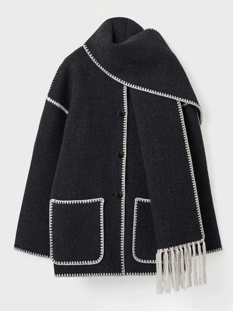 Luxuriöser Herbstmantel mit Schal